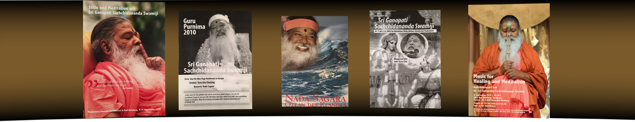 Der aus Mysore, Südindien stammende Sri Ganapathy Sachchidananda Swamiji ist weltweit bekannt für seine Konzerte sowie für seine Lehrtätigkeit im Bereich von Yoga und Philosophie. Seine Lehre beruht auf den traditionellen Yoga-Systemen und beinhaltet den Datta Kriya Yoga, die philosophische Lehre des Advaita-Vedanta sowie die Praxis von Mauna, von Stille, die er in Mauna Seminaren (Schweigeretreats) vermittelt.
